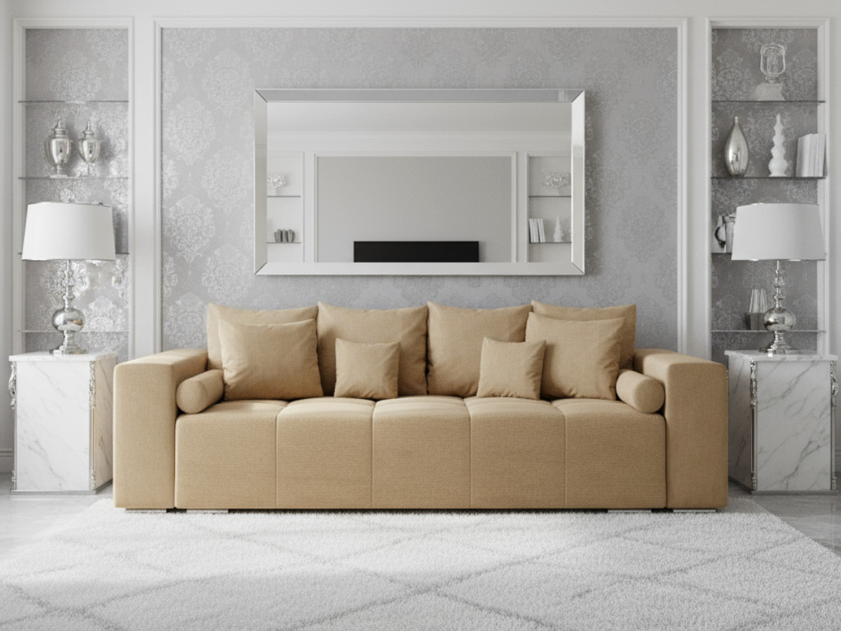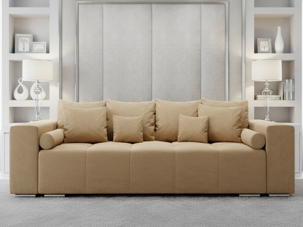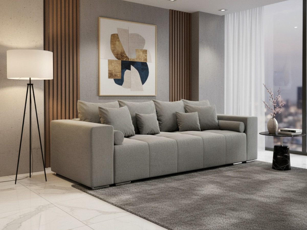 4-Osobowa Kanapa 265 cm – Sofa TILIA to elegancka i funkcjonalna propozycja dla osób ceniących komfort i styl. Jej masywna konstrukcja nadaje wnętrzu solidny, nowoczesny charakter, a proste, szerokie podłokietniki podkreślają minimalistyczną formę mebla. Pikowane siedzisko wypełnione sprężynami bonellowymi zapewnia wyjątkową wygodę i trwałość na lata. Oparcie tworzą duże, miękkie poduszki, które można łatwo zdjąć lub ułożyć według własnych potrzeb. 4-Osobowa Kanapa 265 cm TILIA jest rozkładana, dzięki czemu w kilka chwil zmienia się w wygodne miejsce do spania. Dostępna w uniwersalnej kolorów, doskonale dopasuje się do każdego wnętrza – od klasycznego po nowoczesne.