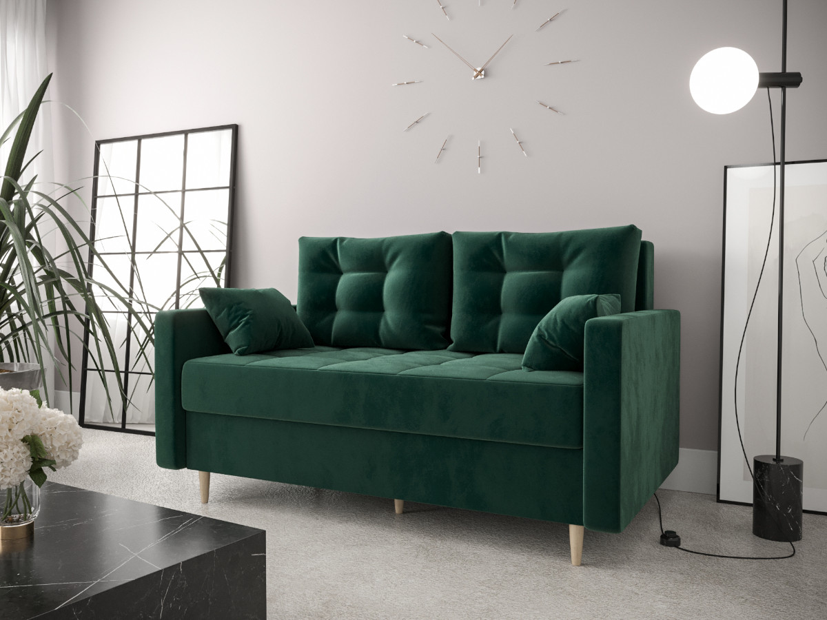 Dwuosobowa Kanapa 155 CM Mała Sofa Rozkładana Z Pojemnikiem + Sprężyny Bonell Pianka T30 + Wybór Kolorów TEMPE
