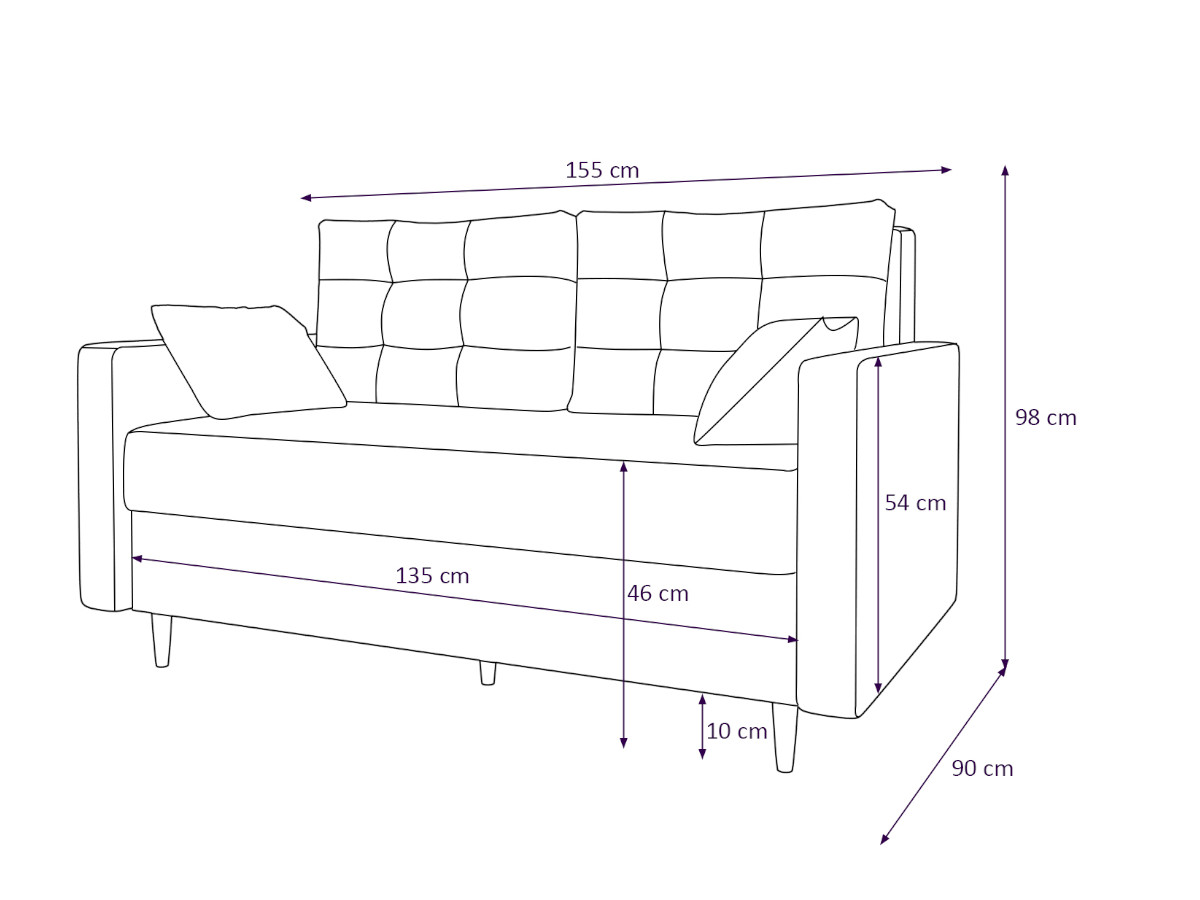 Dwuosobowa Kanapa 155 cm – Minimalistyczna sofa rozkładana TEMPE to doskonały wybór dla osób ceniących praktyczność, nowoczesny styl i komfort użytkowania w jednej formie. Idealnie łączy funkcje estetyczne z użytkowymi, stając się niezastąpionym elementem w każdym wnętrzu.