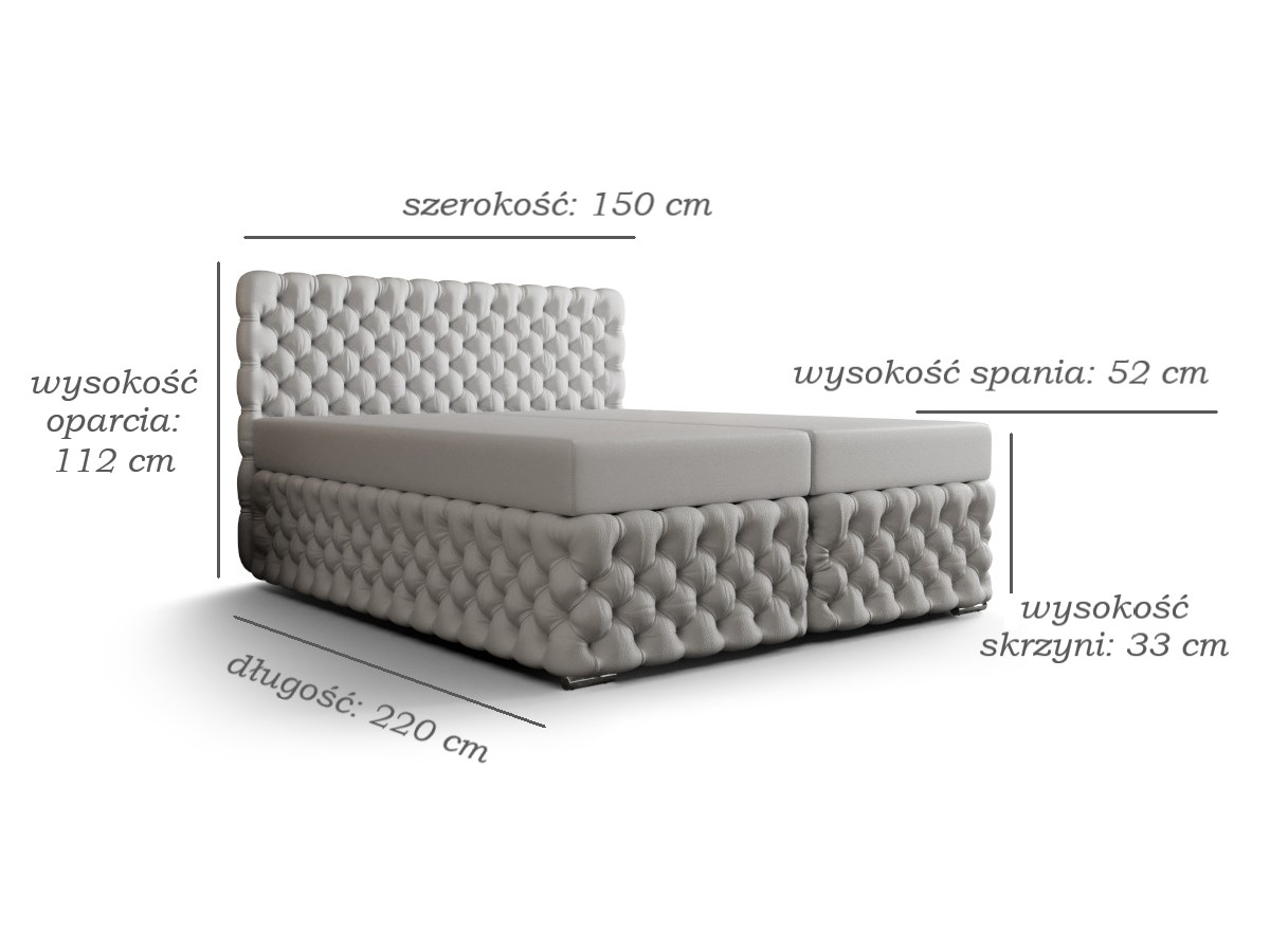 Ekskluzywne Pikowane Łóżko 140×200 AMORE – Łóżko kontynentalne całe pikowane w stylu chesterfield to prawdziwa ozdoba każdej sypialni, będąca ucieleśnieniem klasy, elegancji i ponadczasowego stylu. Jego wyrafinowane detale natychmiast przyciągają wzrok, tworząc we wnętrzu atmosferę luksusu i harmonii.