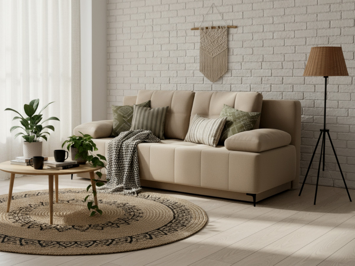 Stonowane barwy – takie jak beż, szarość, czy odcienie kremowe – sprawią, że sofa będzie ponadczasowa i wpisze się w klimat klasycznych, minimalistycznych lub skandynawskich wnętrz.