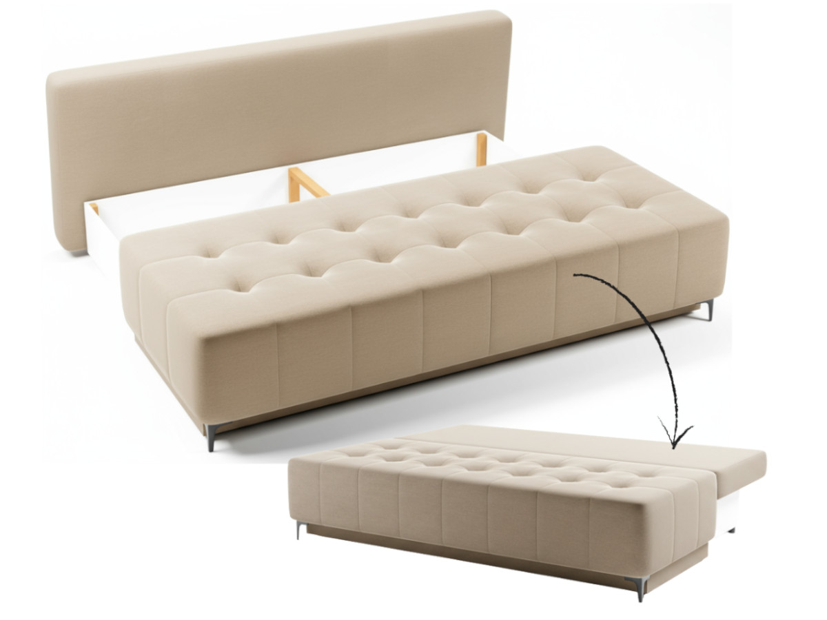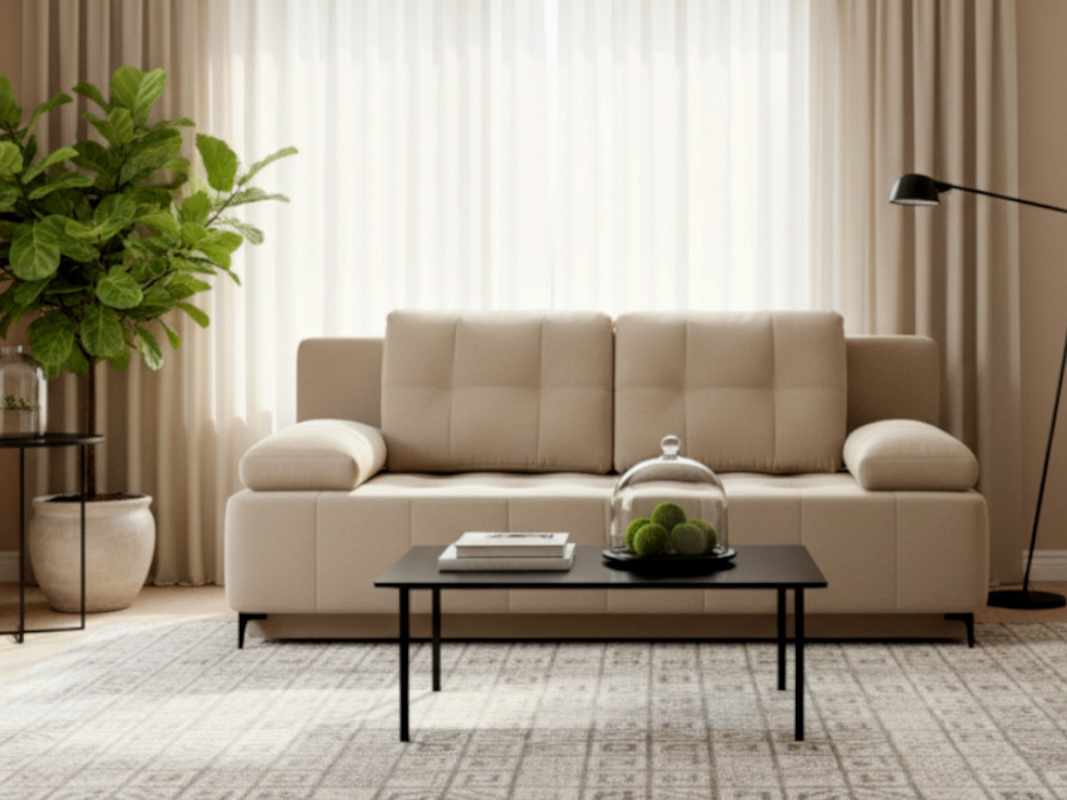 Dzięki temu możesz łatwo przygotować wygodne miejsce dla gości lub zyskać przestrzeń do codziennego wypoczynku, bez potrzeby przesuwania mebli czy skomplikowanego montażu. To rozwiązanie łączy komfort spania z funkcjonalnością i nowoczesnym designem, sprawiając, że sofa staje się naprawdę wszechstronnym meblem w Twoim salonie.