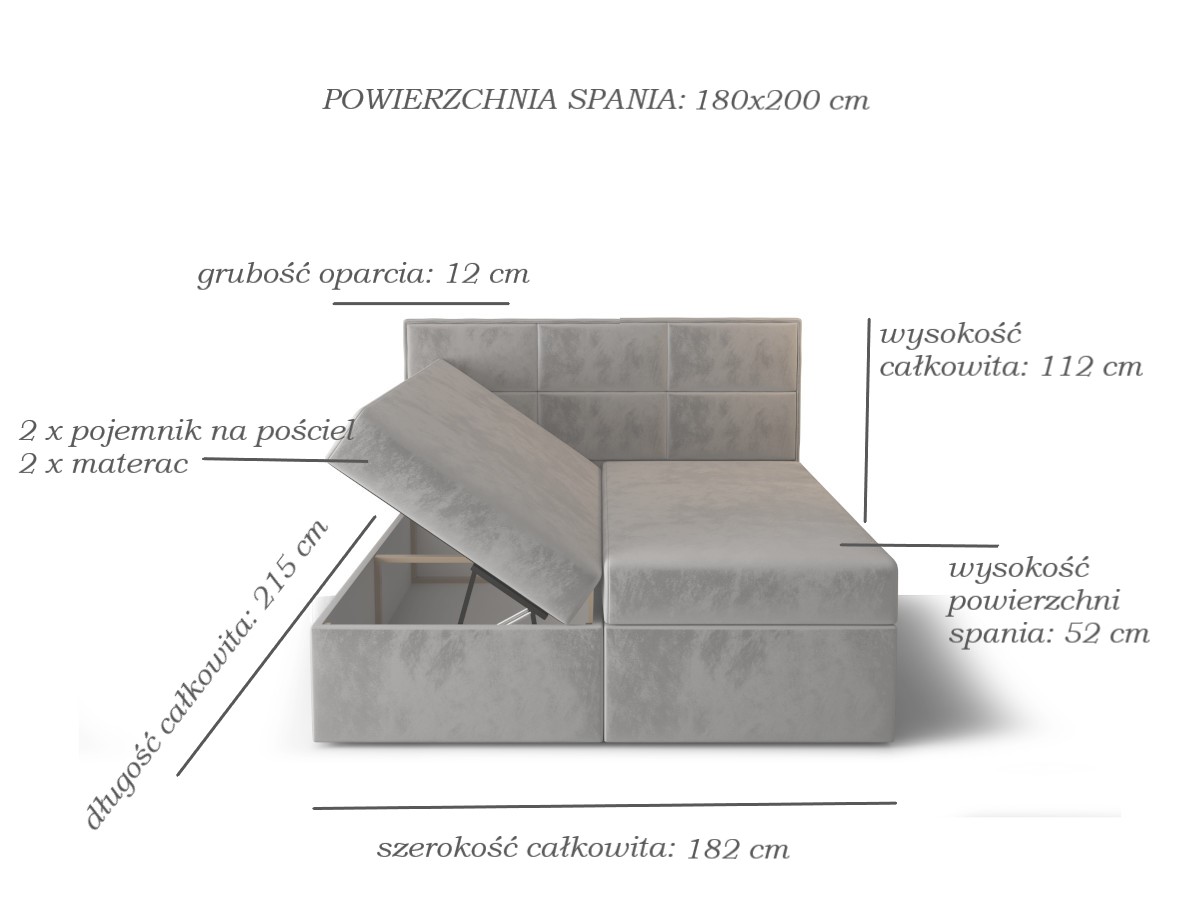 • Powierzchnia spania: 180×200 cm