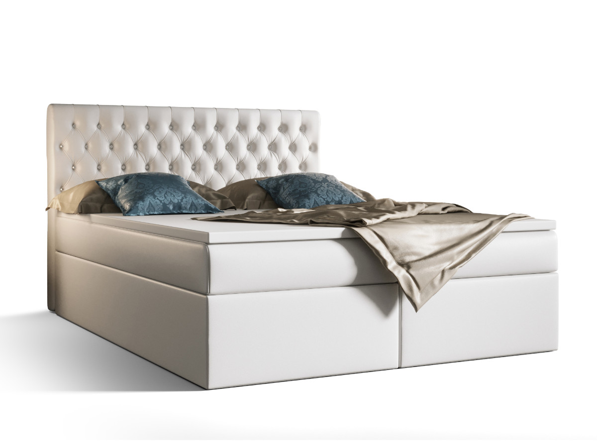 Łóżko Boxspring Z Kryształkami 160×200 Kontynentalne + 2 Pojemniki Na Pościel + 2 Materace Bonell – Wybór Kolorów – VERA