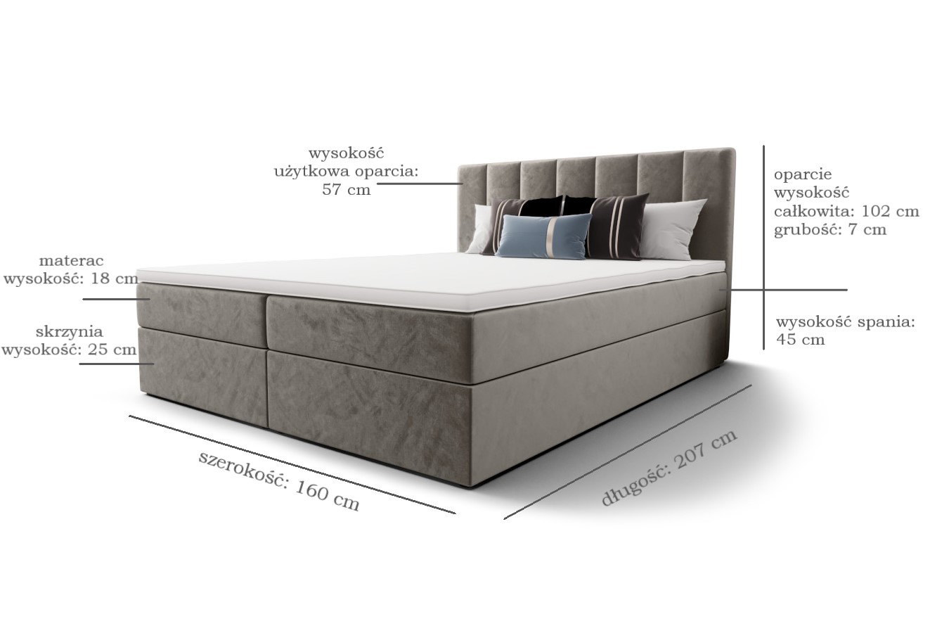 Łóżko Kontynentalne 160×200 Z Pojemnikiem Na Pościel + 2 Materace Bonell + Wybór Kolorów – SAGE