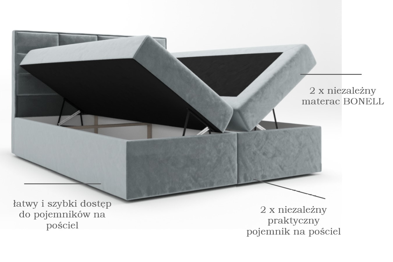 - Łóżko posiada dwa duże niezależne pojemniki na pościel