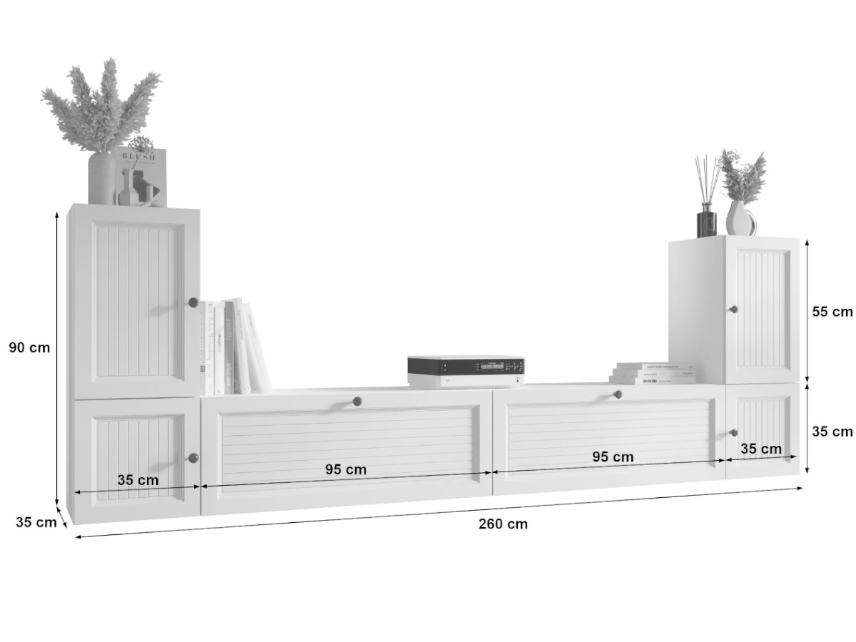 Meblościanka Biała Do Salonu 260X90X35 CM + Fronty Frezowane Malowane MDF 18 MM ARIZONA