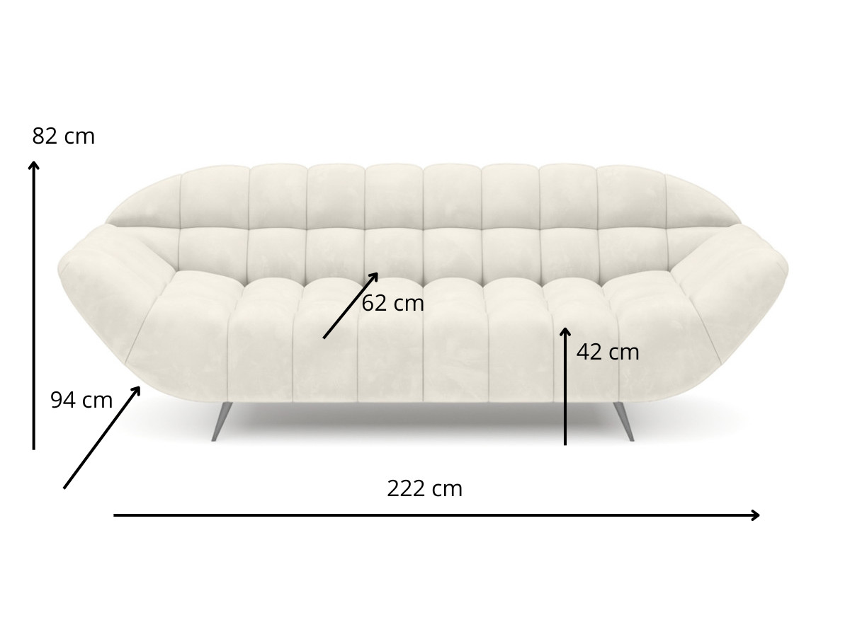 - Wymiary 222x94x82 cm – Nowoczesna Sofa 3-Osobowa 222 cm CLOUD zapewnia przestrzeń do relaksu i drzemki w ciągu dnia.