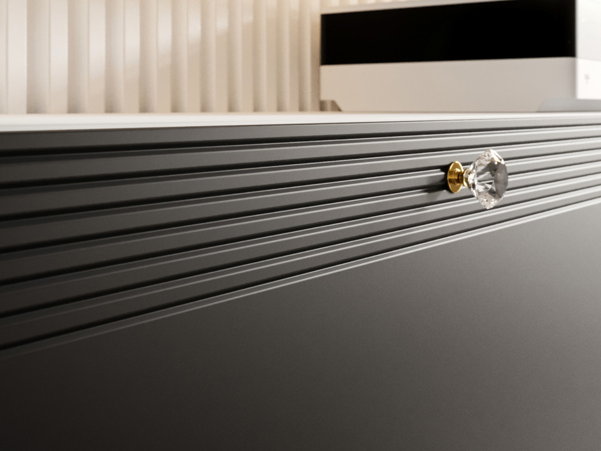 W zależności od preferencji, dajemy Ci możliwość wyboru wzoru frezowania frontów, co pozwala dopasować meble do charakteru wnętrza – od delikatnych linii po bardziej wyraziste geometryczne motywy.