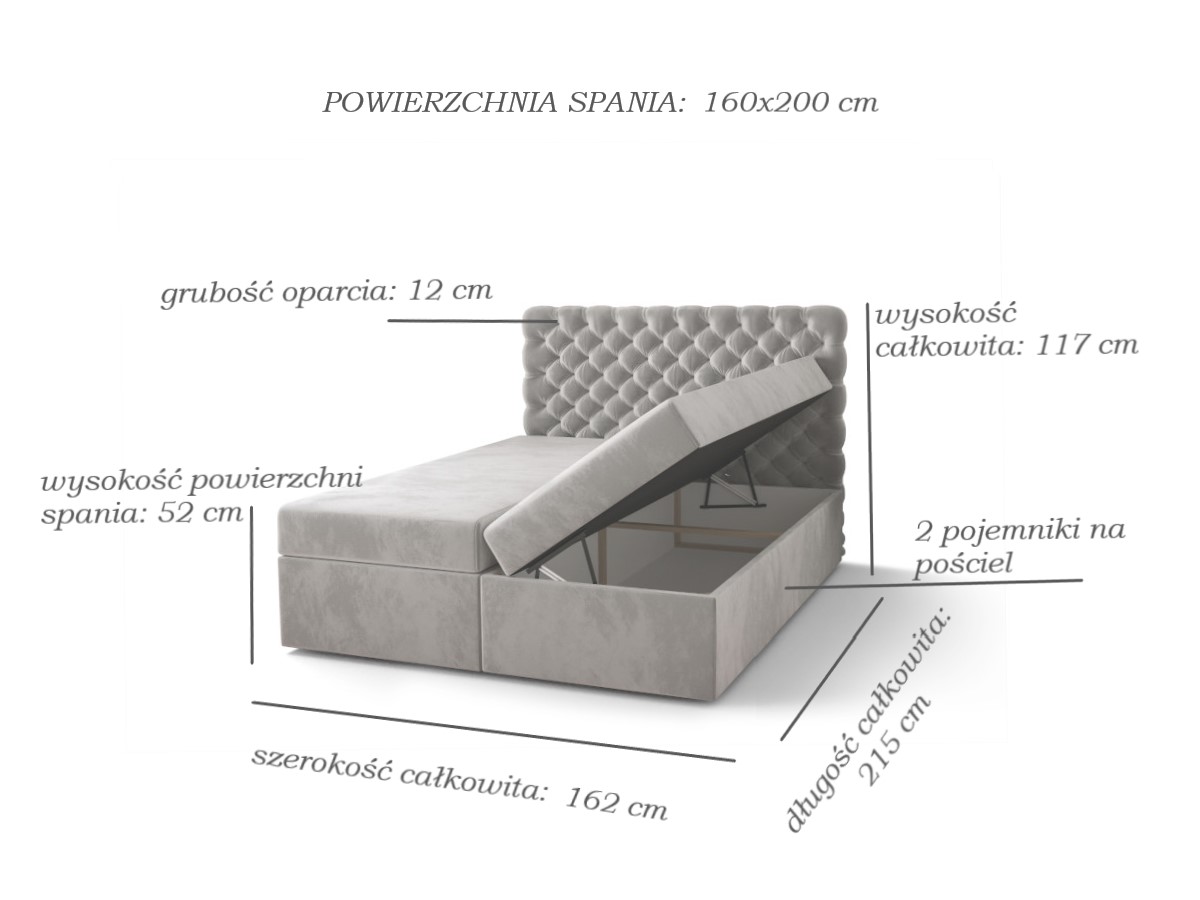 2 MATERACE BONELL TWARDOŚĆ H3 ,2 POJEMNIKI NA POŚCIEL ,TAPICEROWANE BOKI PRZÓD WEZGŁOWIE ,WEZGŁOWIE PIKOWANE W STYLU CHESTERFIELD ,TYŁ FIBERTEX – TKANINA ZASTĘPCZA |