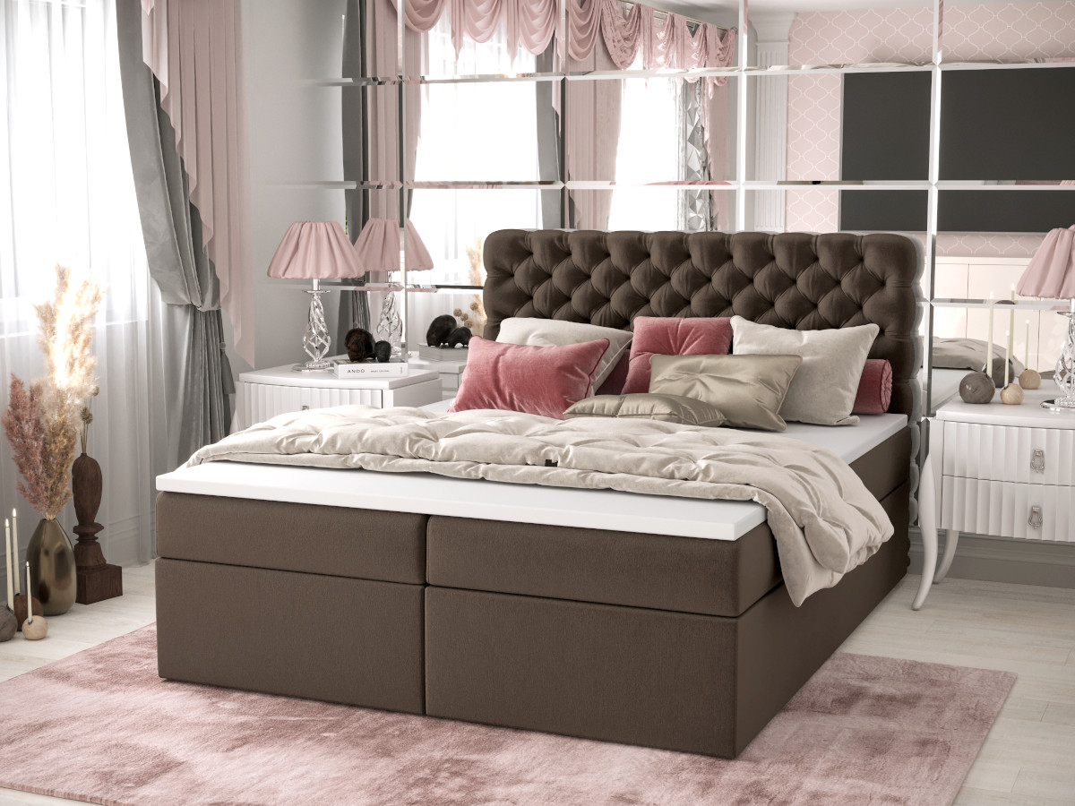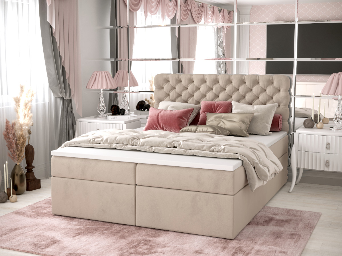 Pikowane Łóżko Kontynentalne 160×200 Styl Chesterfield + 2 Pojemniki Na Pościel + 2 Materace Bonell – Wybór Kolorów – SEMPRE