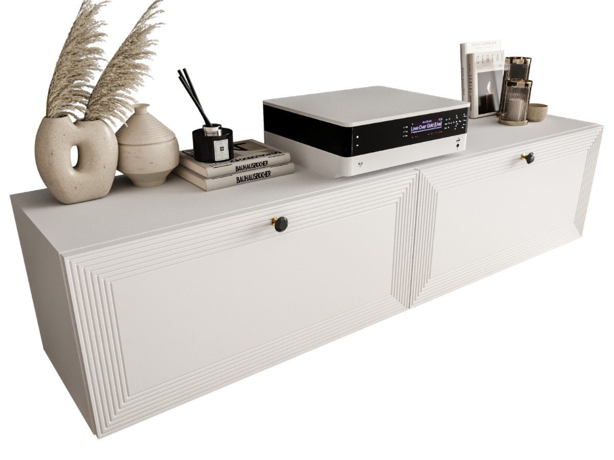 Szafki RTV Białe 150 CM Wiszące 2 Sztuki Modułowe + Fronty Frezowane Lakierowane – EVORA – OFERTA MAGAZYNOWA – WYSYŁKA 24H
