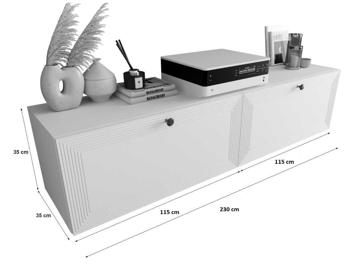 Szafki RTV Białe 230 CM Wiszące 2 Sztuki Modułowe + Fronty Frezowane Lakierowane – EVORA – OFERTA MAGAZYNOWA – WYSYŁKA 24H